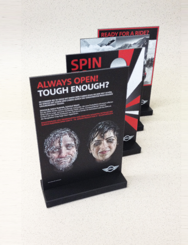 Ein weiteres Rundum-Sorglos-Event-Ausstattungs-Paket bestehend aus dem Entwurf und der Fertigung der Siegerauszeichnung für die beste Snowpark-Shaper-Crew und der Fertigung / Produktion von Info-Aufstellern, Info Rückspiegelhängern, Schlüsselanhängern und des umfangreichen Brandings aller von den Veranstaltern und dessen Mitarbeitern verwendeten Textilien während der Burton European Open in Laax/CH 2014.
