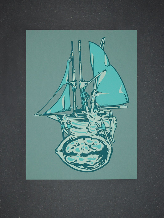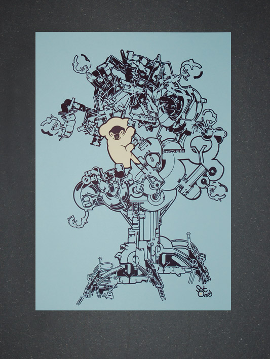 Limitierte Drucke auf schicken halbkartonähnlichen Papieren in wunderbaren Mattfarben für den Künstler und Grafiker SAT ONE